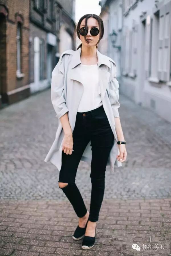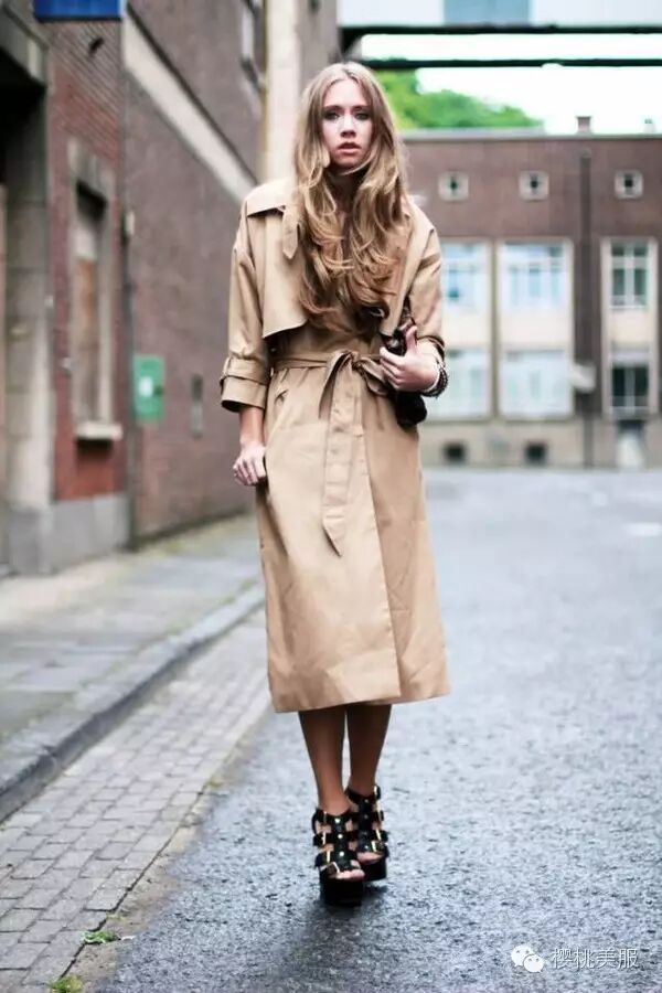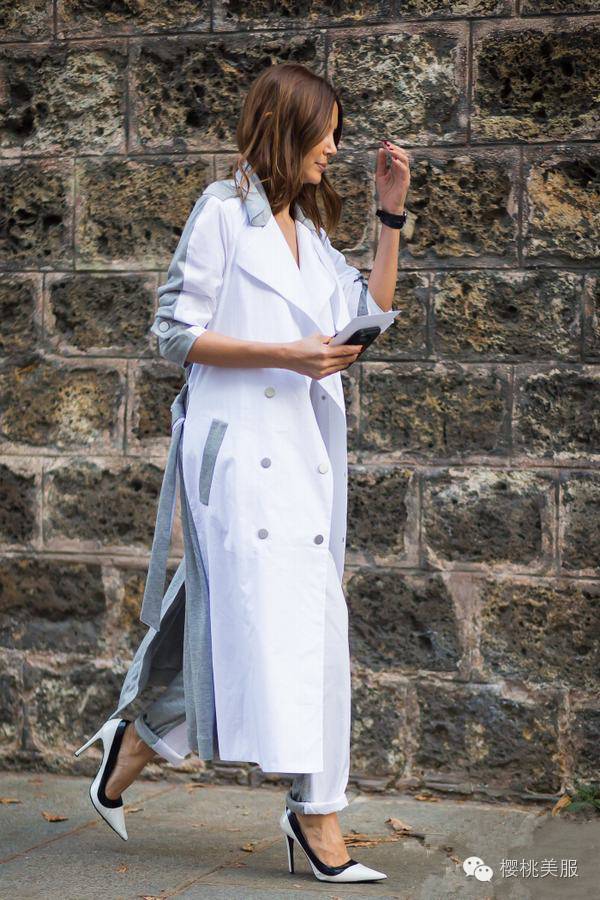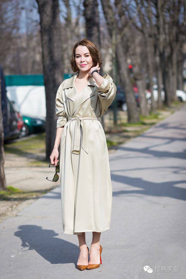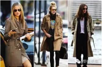 前几天土豪莉写侧边条纹裤时提到过风衣,那么今天土豪就来种一种这根草。我们对风衣的了解很多来自Burberry这个品牌,也有些来自电影。直到Burberry气质高贵的广告打进人们的视线,很多人才开始对风衣有了新的认识和了解。它绝对不是一件一成不变的外套,时尚是不停变化的,而它在历经长久的时尚风潮中依然保持高贵的气质,是秋季必备的经典的时尚单品。说到风衣,首先想到就是赫本在《蒂凡尼的早餐》里穿的那件卡其色,双排口的长款风衣为最经典。除了卡其色,我们从小到大对风衣的记忆,就是Burberry广告常会出现的大地色如今的设计师们赋予风衣很多颜色供我们选择,比如说英姿飒爽的军绿色。再来就是满足万千小女心的粉色,也是美得不要不要的哦。清新淡雅的绿色,让心情也变得自由不少,风衣上的拼接细节也是MM们不可忽视的哦!时尚博主们总喜欢选择白色,土豪莉的眼中全是高级两字飘过,从头到脚以白色为主色调,加入了很多细节的拼接,拼色设计,让高级感一发不可收。风衣搭配拼色运动鞋,简约又不失活力范,满是都市生活的味道,逛街也变得心无旁骛。浅绿色风衣内搭白色套装,清爽劲真能溢出整条街,而面料和剪裁上则体现高级感,让搭配的时尚度丝毫不减。风衣外套搭配半身裙十分优雅,尤其是今年很热的百褶裙,搭起来更是复古又新潮。初秋之际,薄款风衣外套搭配短裤让你尽情秀长腿,又不用担心感冒。风衣外套搭配修身牛仔裤很显瘦,尤其是黑色或深蓝色九分破洞牛仔裤。连体裤搭配风衣就是出街自由又拉风的好cp,不仅省去了上下衣组合的费心费力,也比裙装来得更自由简约,春季穿出街就一个字“爽翻”。风衣外套搭配阔腿裤,帅气又摩登,蓝色印花围巾和阔腿牛仔裤色彩呼应让造型更加统一抢镜。舒适柔软的呢绒风衣,有种难以言喻的贵妇气质,配上尖头高跟鞋显得优雅至极,独特出众。内搭纯色单品,与杏色风衣的格调不谋而合,淡淡的英伦风由衷而出,让一些女icon更是爱不释手。风衣搭配上铅笔裤和高跟鞋,显得高挑优雅,而且大气有型,搭配上精致的包包,轻松穿出女神范!衬衫配牛仔九分裤,相对于衬衫配阔腿裤来说,会较为修饰身型,多了些潇洒干练在里面。短款上衣与高腰裤的组合,突出腿长特点等等。如果想丰富内搭的层次感,可以用现在流行的针织衬衫组合,时尚之余,也增加了身型的立体感。杏色风衣搭配修身毛衣裙,女人味十足,不管走到哪里都是焦点这身look有几个时髦点,一是今年流行的印花元素,完全可以加入到搭配中来吸睛,二来,七分阔腿裤搭配风衣会更显腿长,也是今年流行的时髦长度哦!最后告诉大家一个小秘密,风衣可最为有风度的情侣装来穿哦!~个子小的姑娘,在挑风衣时,尤其要注意2个地方,跟我一起念——肩宽肩宽肩宽、袖长袖长袖长!和男士的西装一样,试穿时,一定观察肩部是不是合身。个子小的姑娘——选择刚过臀部/不超过大腿中部的长度好了今天就说到这里,喜欢风衣的菇凉要仔细读哦~内容有点多哈,土豪莉要去休息啦~