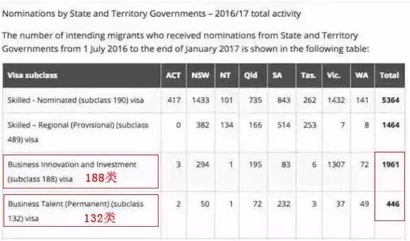 上表为澳洲移民局近日公布的最新申请数据,2016年7月1日至2017年1月末, 澳洲各个州188类总共发出1961份担保,“一步到位拿永居绿卡”的132类别总共发出446份,总共有2407个家庭申请商业移民,单按一家三口计算,移民局要发放7221个商业移民签证。这其中来自中国的申请量占85%以上,保守估计澳洲移民局至少要给中国申请人发放6100多个签证。而之前的年份澳洲移民局每年发给中国大陆的商业移民配额仅7000多个,也就是说,2016财中国申请人半年时间就已经快用完移民局一年给的配额。