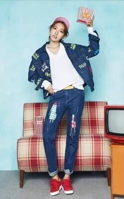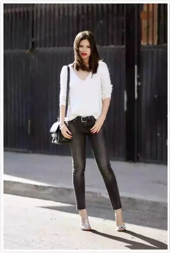 不喜欢破洞的也可以选择常规款的牛仔裤,搭配起来也不会差。
