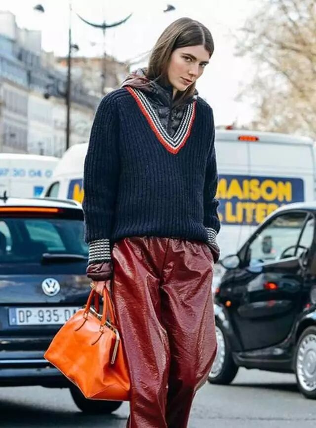 欧美博主Diletta Bonaiuti这样搭配,把针织衫全部束在阔腿裤里,身材比例一下就被拉伸了,复古又摩登范,适合追求轻熟风格的妹子。