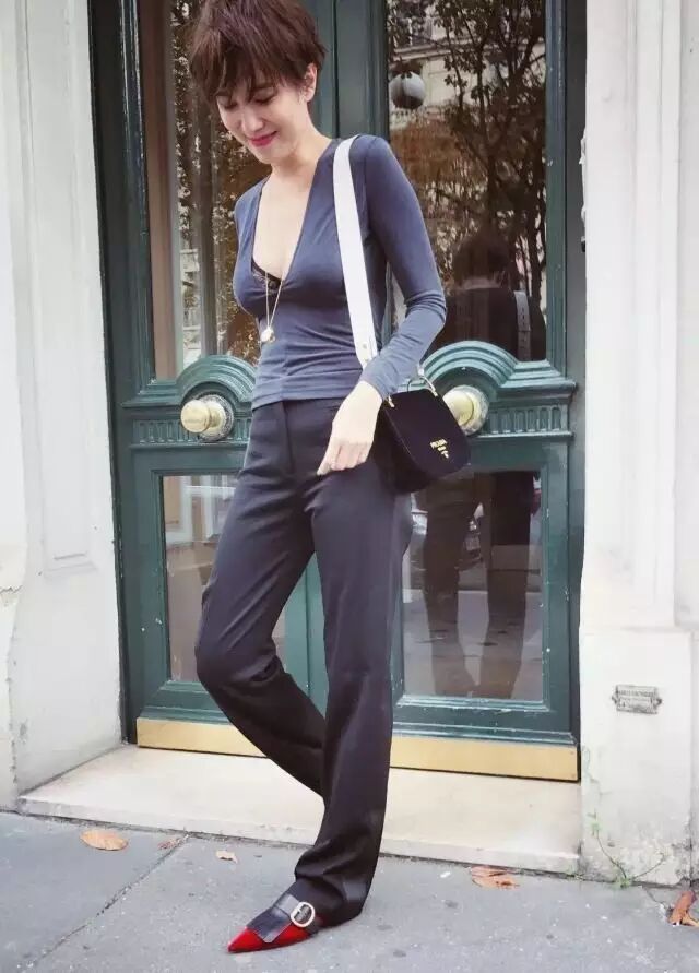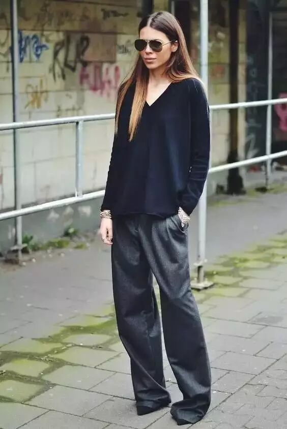 也可以选择超长款的阔腿裤,把鞋跟遮掉,一双隐藏在裤管下的高跟鞋,可以避免宽松裤型带来的显矮困扰,给人一种你腿2米八的错觉。
