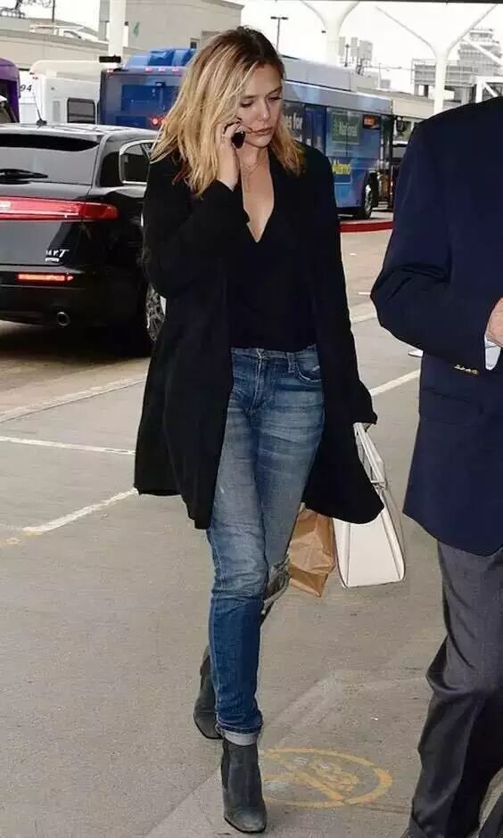 不喜欢常规,也可以学学奥利维亚-卡波,把白色的V领针织拉成一字领穿,露出黑色小肩带,即甜美又有点小性感,不过提这样穿着,肩带不要太过五彩缤纷。