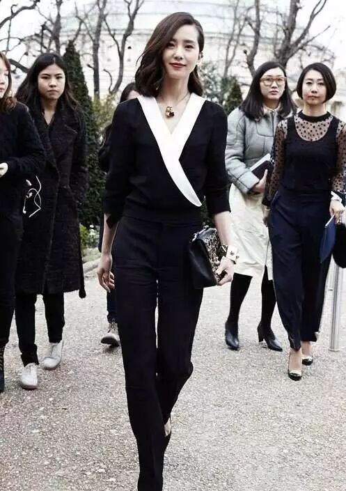 不喜欢牛仔的妹子,可以尝试搭配黑色紧身裤,这种搭配最不会出错,帅气又富有质感。