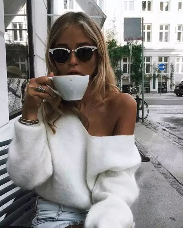 露出一侧小香肩,像是不经意的滑落,其实有点小心机,有种别样的妩媚,好多欧美时尚博主都喜欢这样穿。