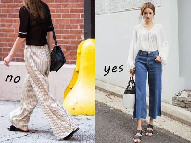虽说阔腿裤的出现拯救了小短腿,但那也要看阔腿裤的长度了~