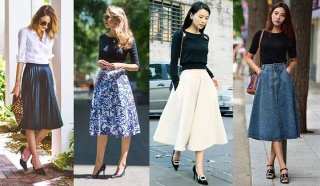 质地、款式不同的迷笛裙,搭配出的效果也大不相同,但整体简单又百搭,轻松hold住任何场合 ↓ ↓ ↓