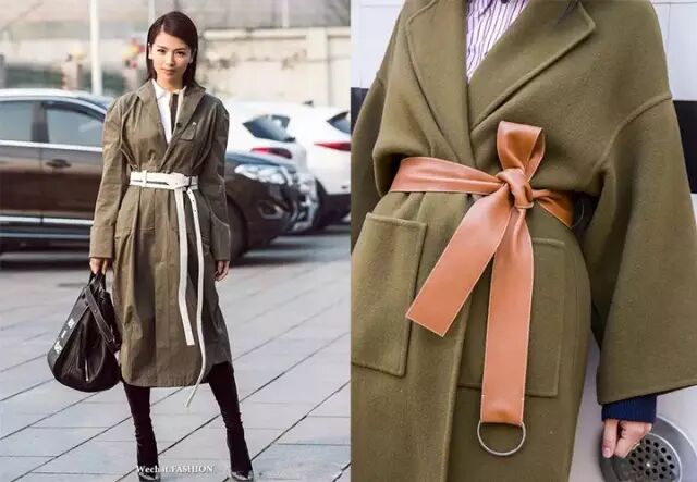 刚才说风衣时提到了“腰带”~腰带的作用不小,不仅能做配饰又拉高腰线修饰腰身,色彩鲜艳的腰带还能转移注意力~