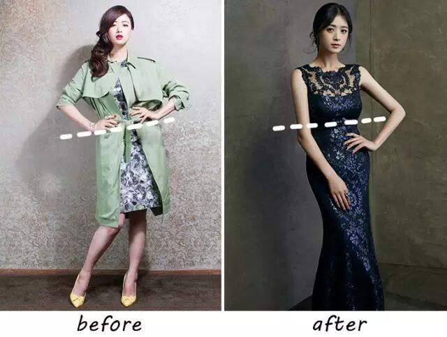 同样是裙装,蒋欣之前的穿搭既没显出腰身,又没提高腰线,最后身高优势全无,看上去也胖了不少...而之后改变了腰线设计,身材的视觉效果不用小编再夸了吧~
