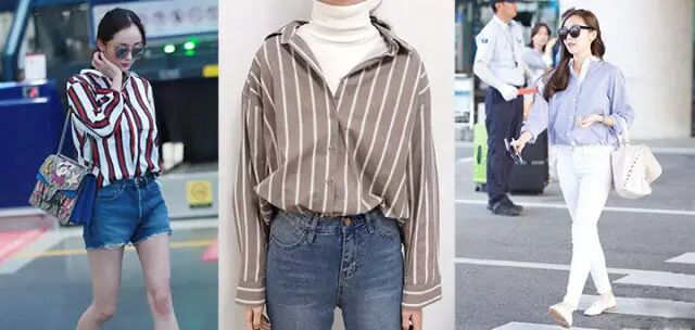 想要显瘦,竖条纹元素的衬衫绝对是首选,视觉上拉长身高也减轻体重 ↓ ↓ ↓