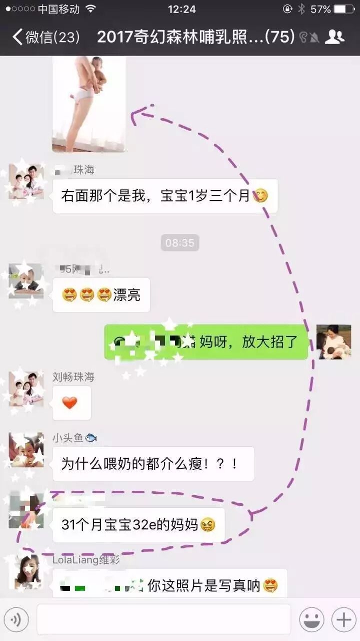 妈妈们纷纷在群里发来自己和宝宝的哺乳照争取入选。