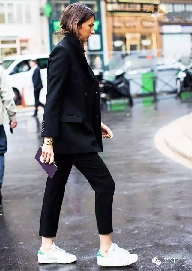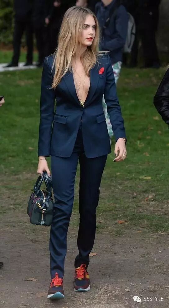 超模卡拉•迪瓦伊的衣品好到让人惊叹,尽管现在类似addidas stan smith类型的小白鞋是火到不行,但是卡拉将NB这样的跑鞋搭配西服套装也是毫无违和感,记得要选九分的窄腿版西裤,时尚造型大功告成!