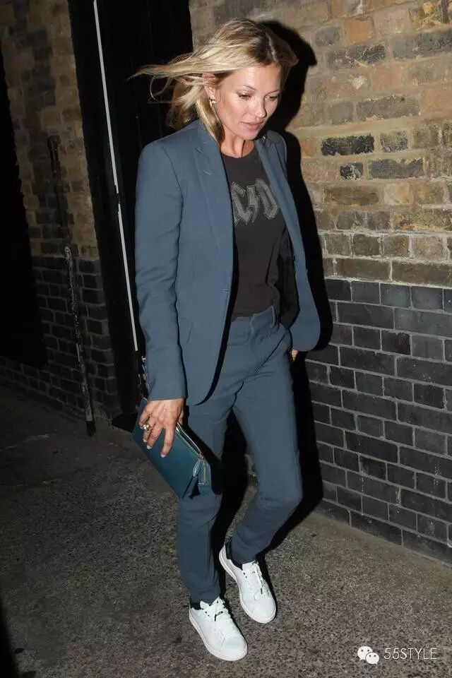 众所周知的时尚ICON,Kate Moss早在1993年在遇见德普叔之前,她跟意大利时尚摄影界里的男神级人物Mario Sorrenti曾有过一段情,叛逆的Kate Moss 就经常用西裤搭配球鞋,在当时相当前卫。