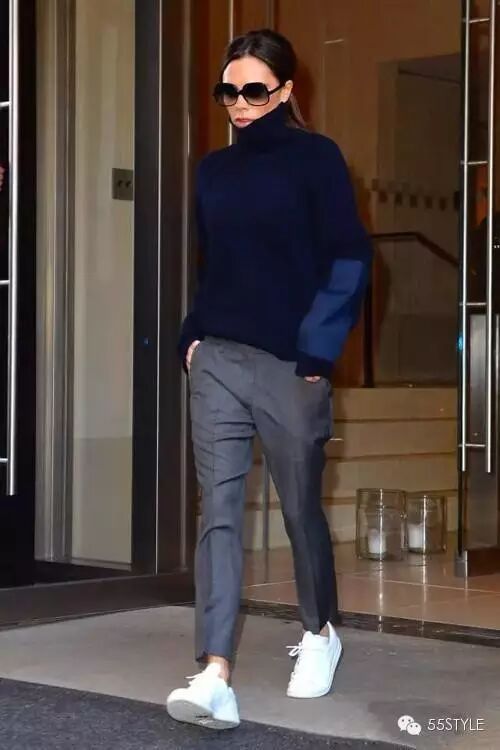 贝嫂“高领毛衣+西裤+小白鞋”的装扮出街,舒适又帅气,还不失她一贯的干练风格。大家惊呼,原来脱掉高跟鞋的她也可以继续时髦!