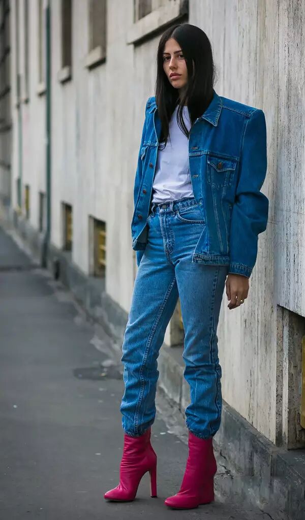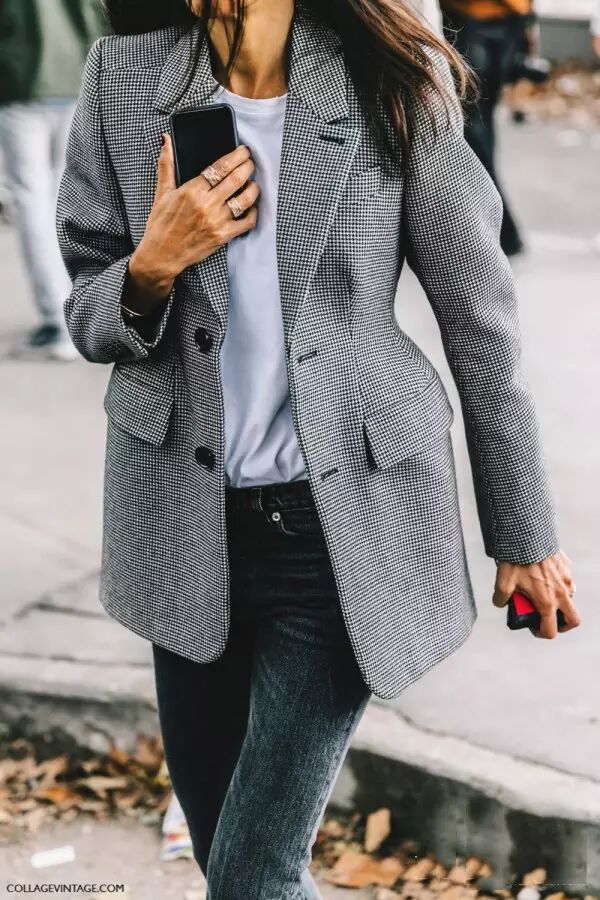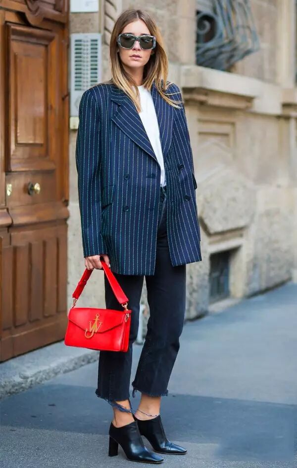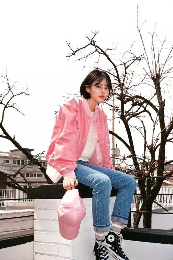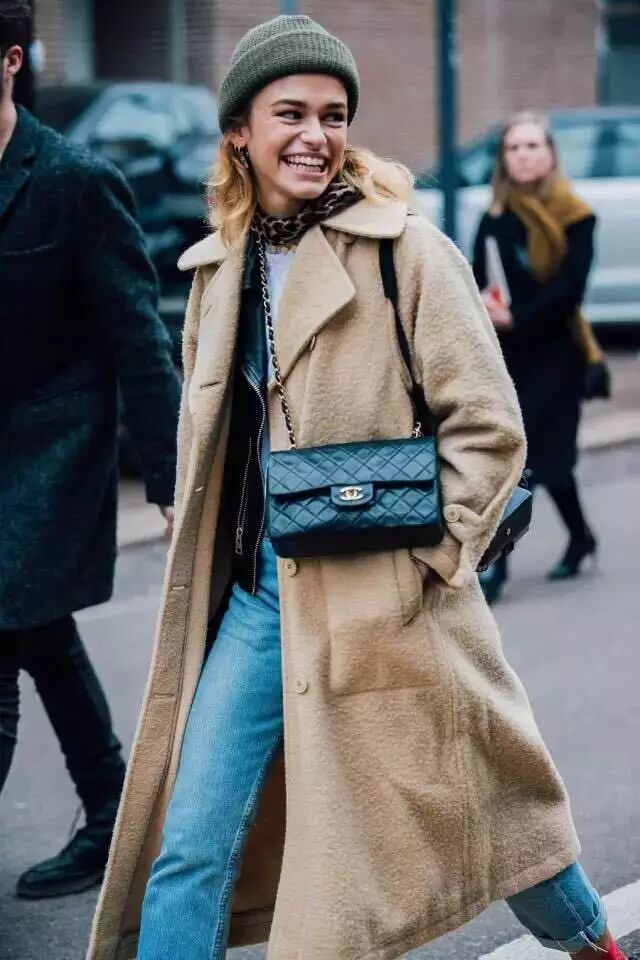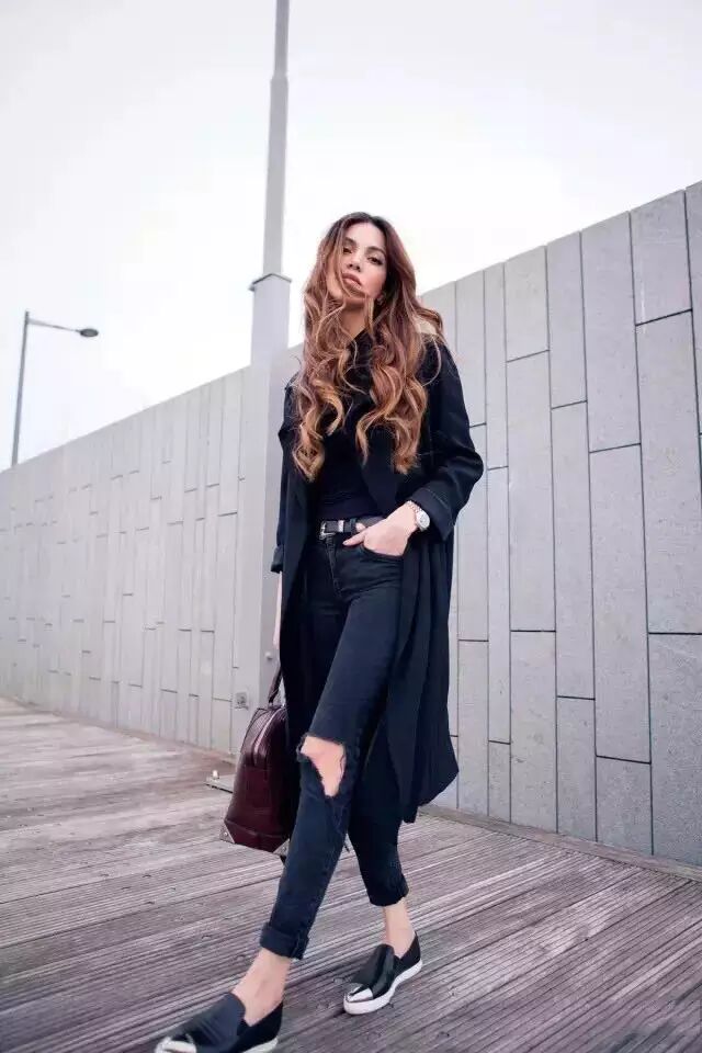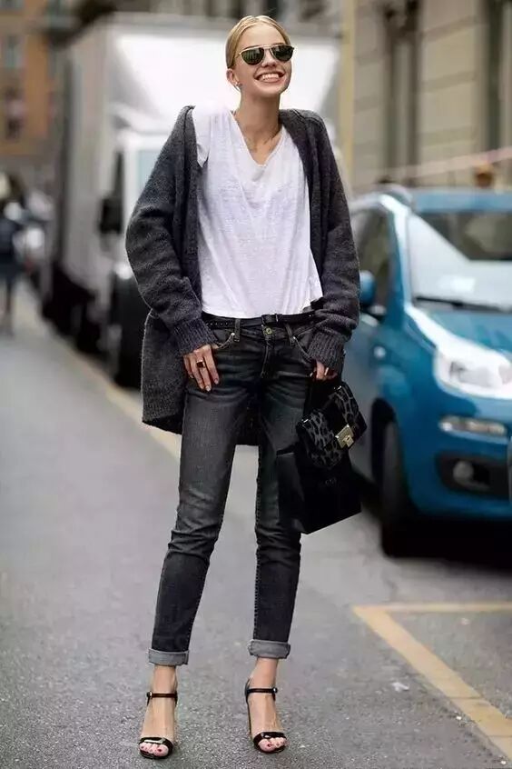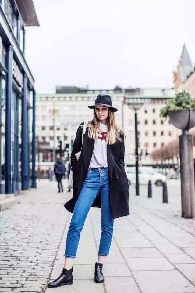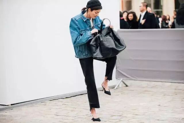 牛仔外套+T恤:牛仔外套毫无疑问是万年常青款,街拍必不可少的单品,T恤外随便套一下就可以出门了。穿平底鞋的话可以搭配九分裤,看起来会很修长