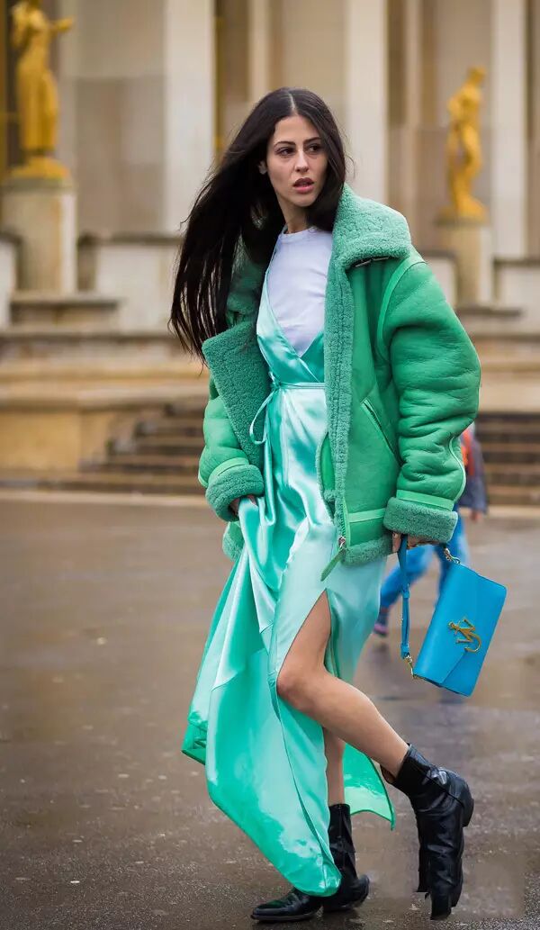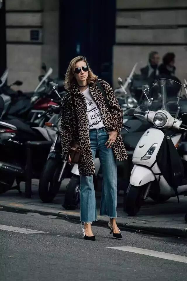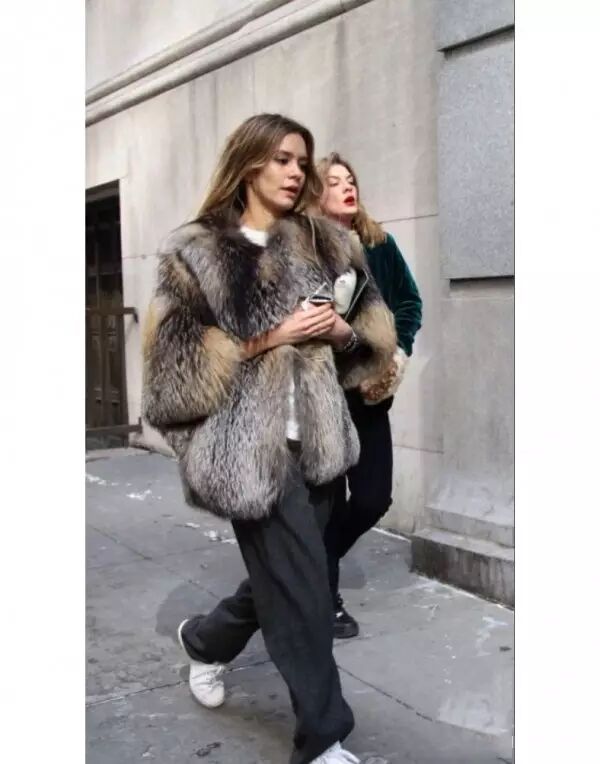 皮草+T恤:选择七分袖款或者短款的皮草,内里穿一件T恤就能轻松切换成春天模式。无论小白鞋或者是高跟鞋都可以随意切换
