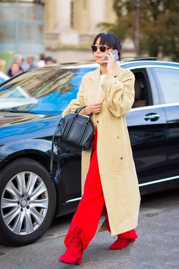 选择浅色系风衣让人觉得轻盈