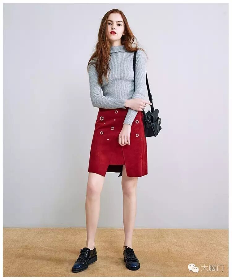 半裙也很多都喜欢,我自己有这条,仿麂皮半裙,下摆的不规则设计有打破规整的活力感,小圆环也是今年的流行元素