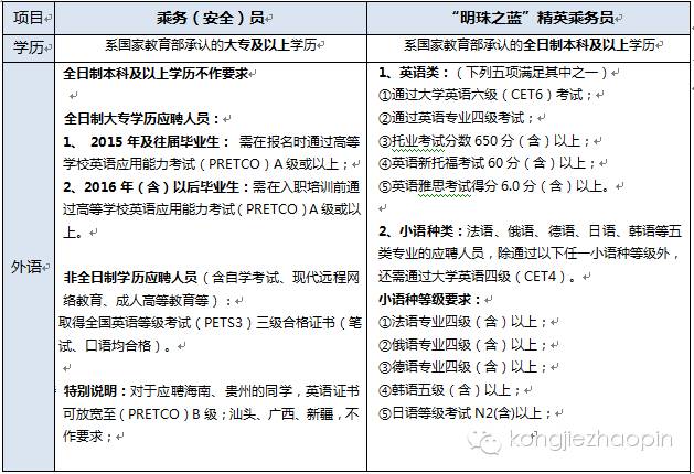 招聘岗位:乘务(安全)员;“明珠之蓝”精英乘务员