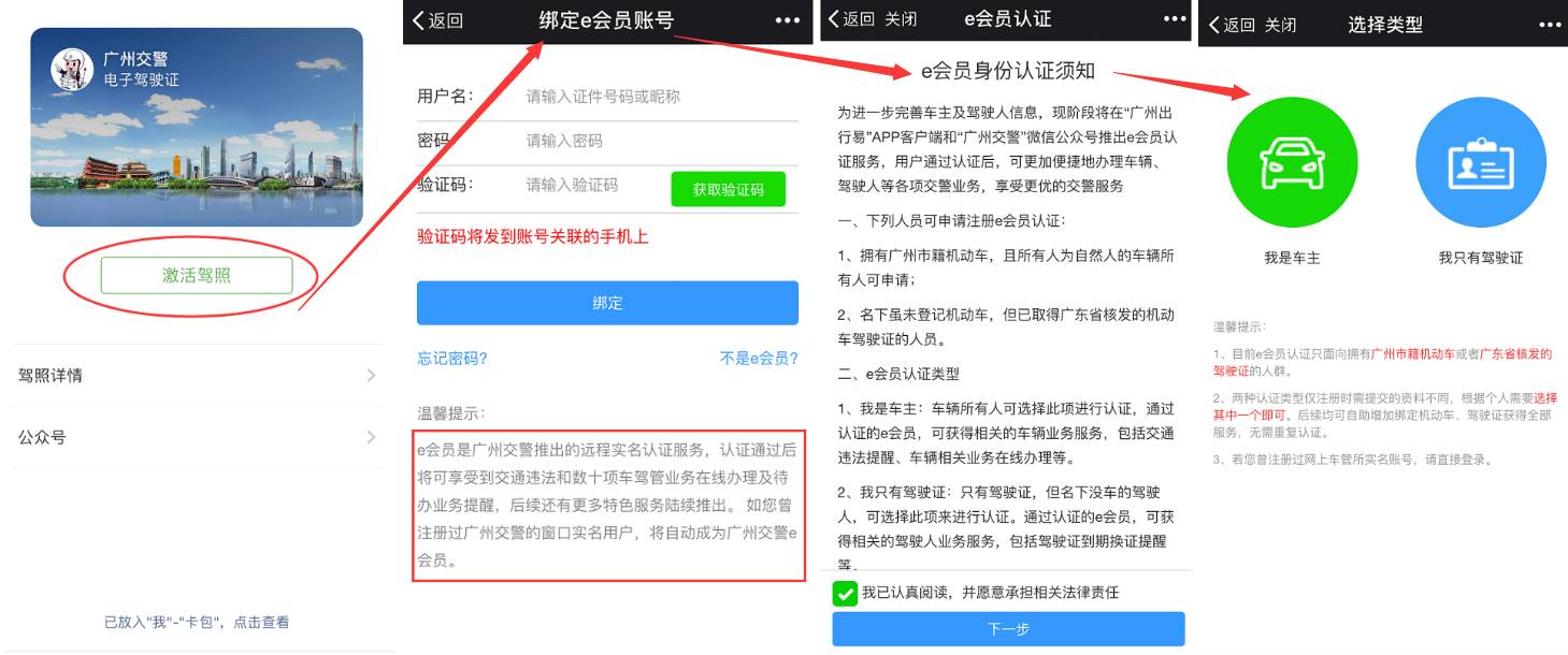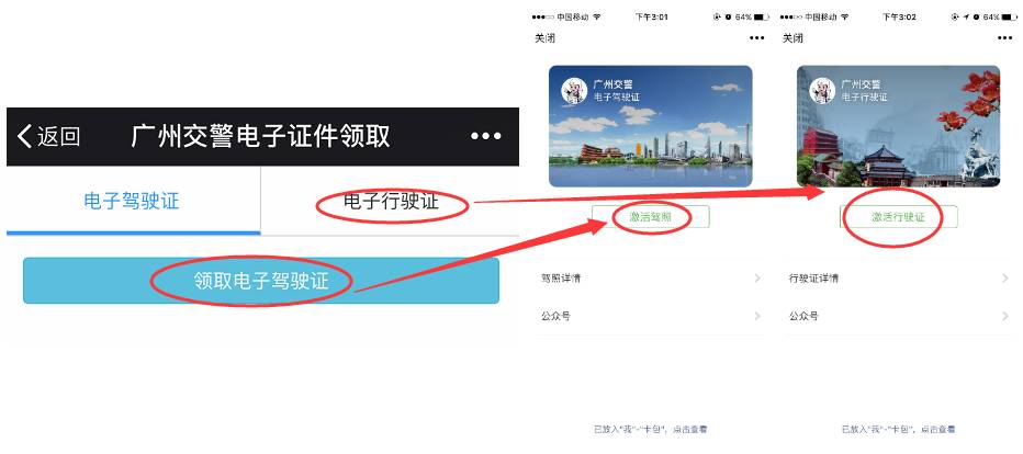3、已注册过“广州交警e会员”的亲可以根据系统提示直接领取并激活电子驾驶证和电子行驶证~如下图↓↓↓