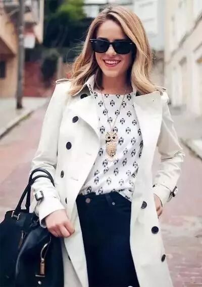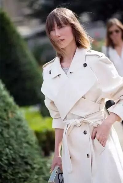 白色风衣清纯淡雅,比较适合身形较瘦的女孩子。▼