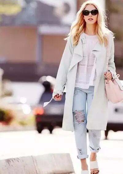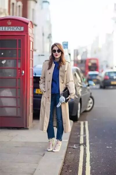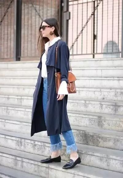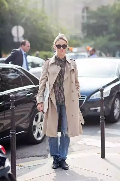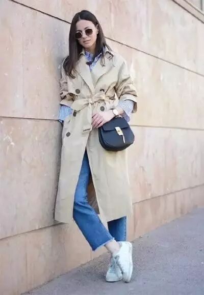 风衣+牛仔裤是非常常见的组合啦,也是最不容易出错哦~▼