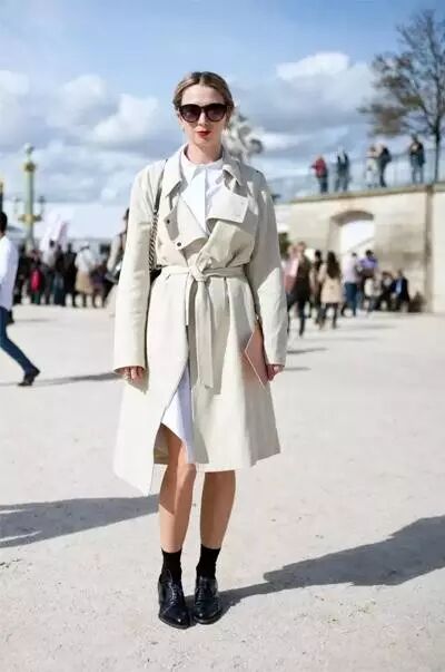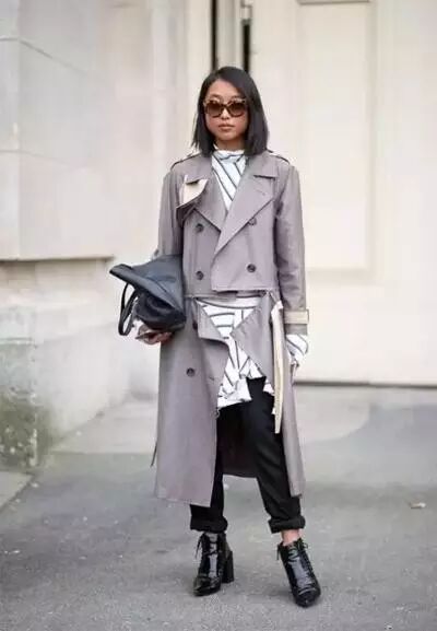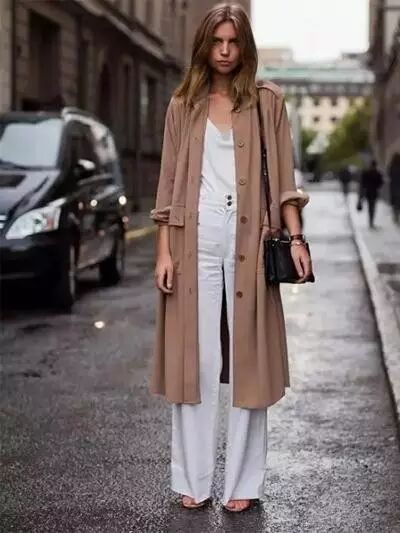 风衣内搭衬衣让你气质十足,经典的白衬衣和蓝白条纹衬衣都是很好的选择~▼