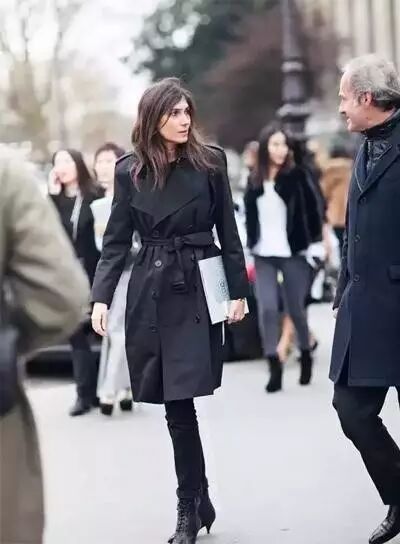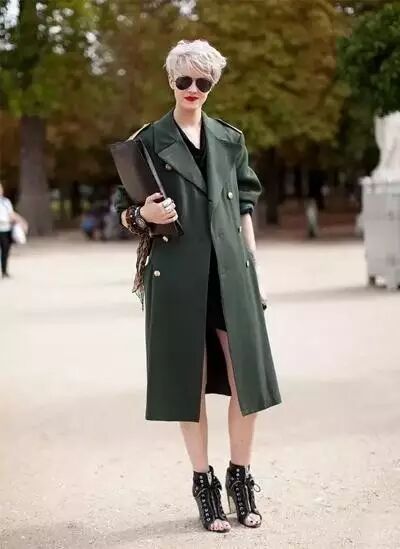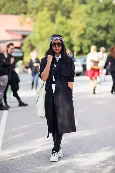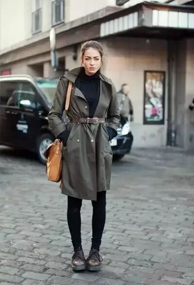 帅气的风衣搭配黑色紧身裤,率性简约~▼
