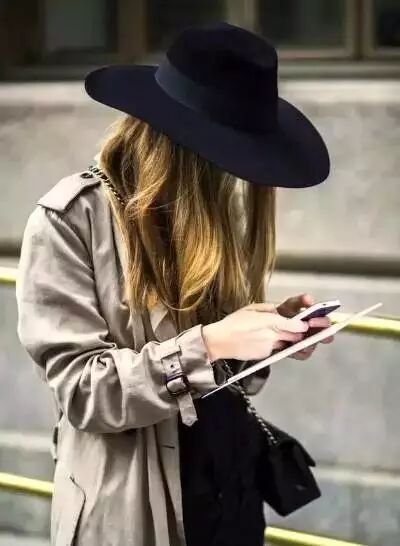 风衣搭配宽檐帽,无论行走在街头还是驻足在街角都带着文艺范~▼
