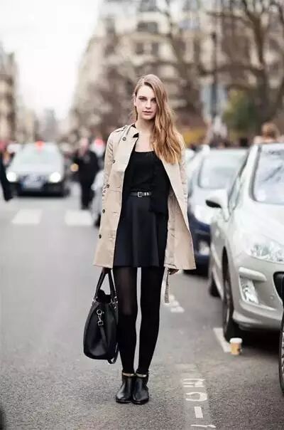 中长款风衣搭配短裙,可以显瘦显高哦。▼