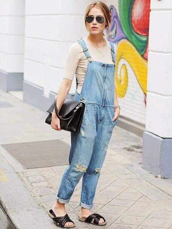 牛仔背带裤配上小丑鞋,立刻就从普通休闲中脱颖而出。