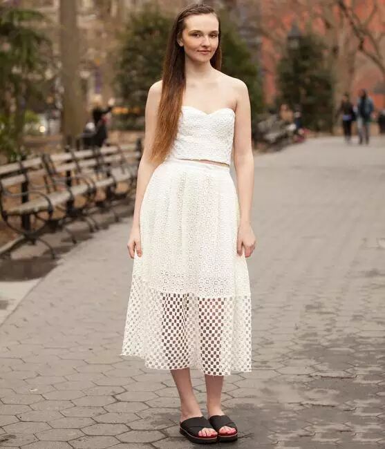 白色长裙西装外套,小丑鞋助你成为霸气任性女总裁。