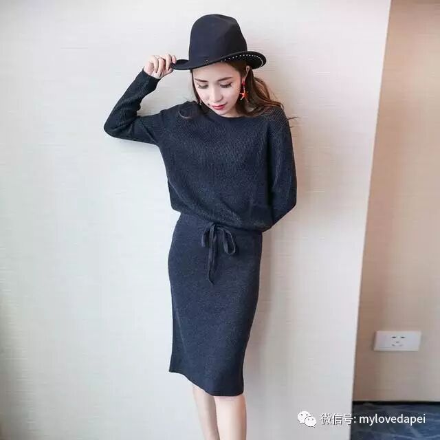 上衣是一件拼色针织衫,白色跟蓝色的拼接设计,超显个性 简洁的圆领领口,简约又很能修饰脖颈 蝙蝠长袖的设计,给衣衣增加一丝慵懒的气息 宽松的版型,一点也不挑人穿的哈,而且还超级藏肉的哈 有小肚腩或者腰部有赘肉的妹纸再也不用担心啦 下装的针织裙上身也是好看到不行 。