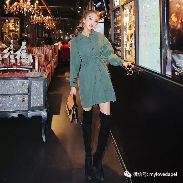 风衣是秋冬必不可少的装备,这款风衣裙不仅有中性的洒脱,还有一些小女人味的气息哦。翻领的设计,颇有中性风格的设计感这一点上做的比较好哦,袖口别扣的点缀,真的很霸气。单排扣的设计,起到了很好的修身效果,也为衣服增添了一些情调感,绑带的设计比较人性化,收放自如,随意调节。