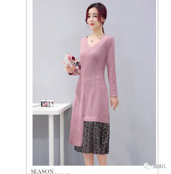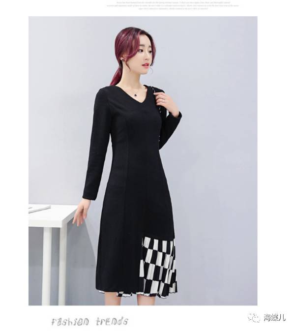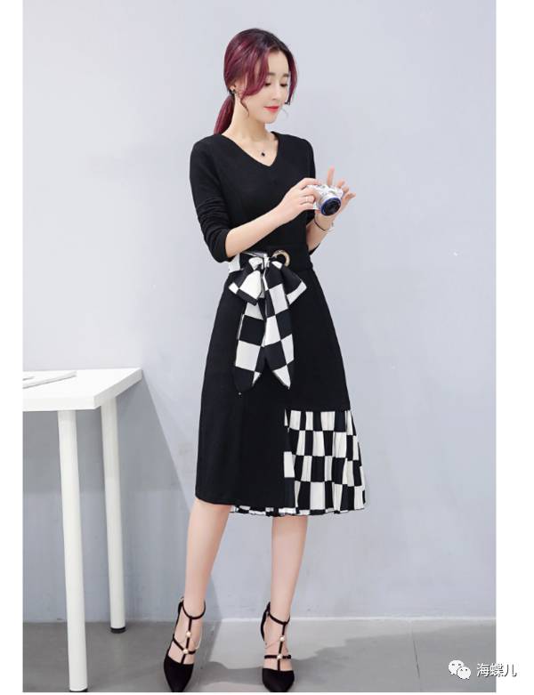 时尚套装搭配示范分享NO2:收腰中长款A字裙连衣裙