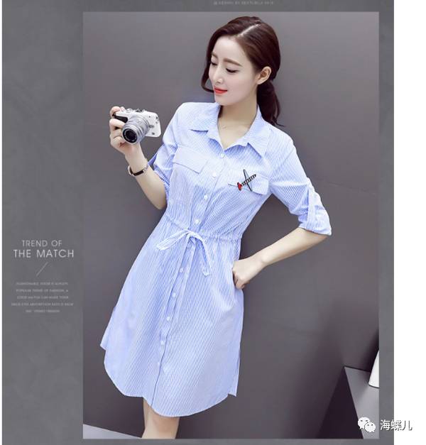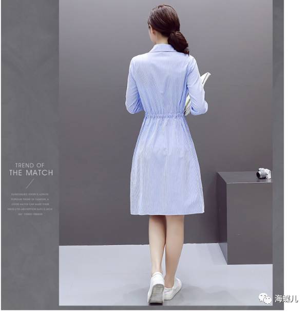 时尚套装搭配示范分享NO18:中长款衬衫裙修身条纹a字裙