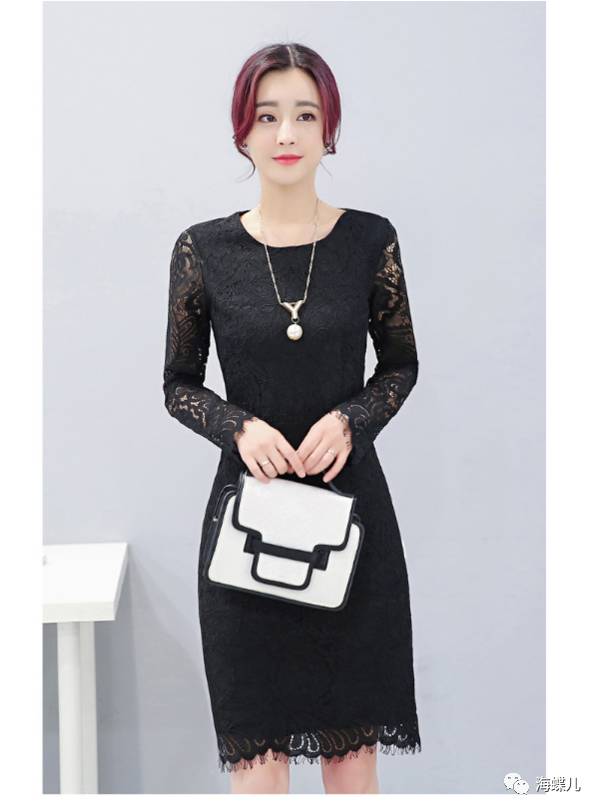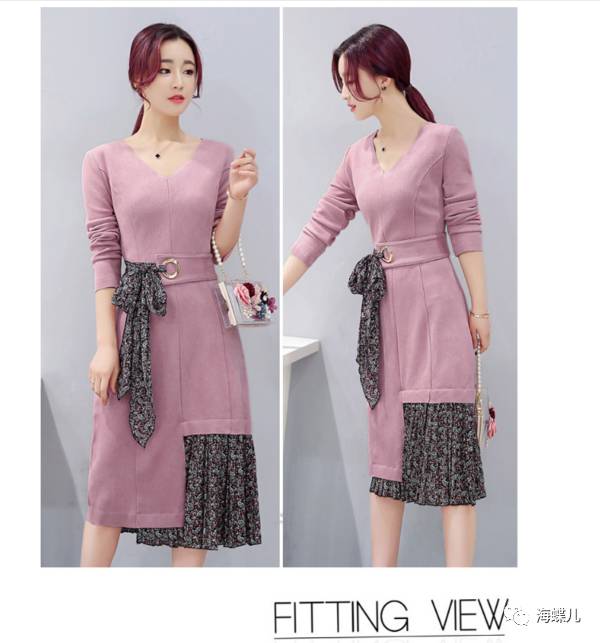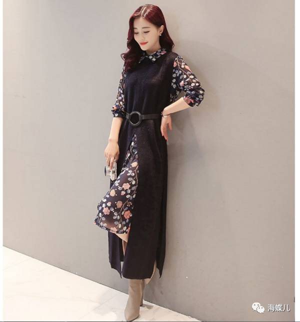 时尚套装搭配示范分享NO12:长袖打底连衣裙时尚系带显瘦连衣裙