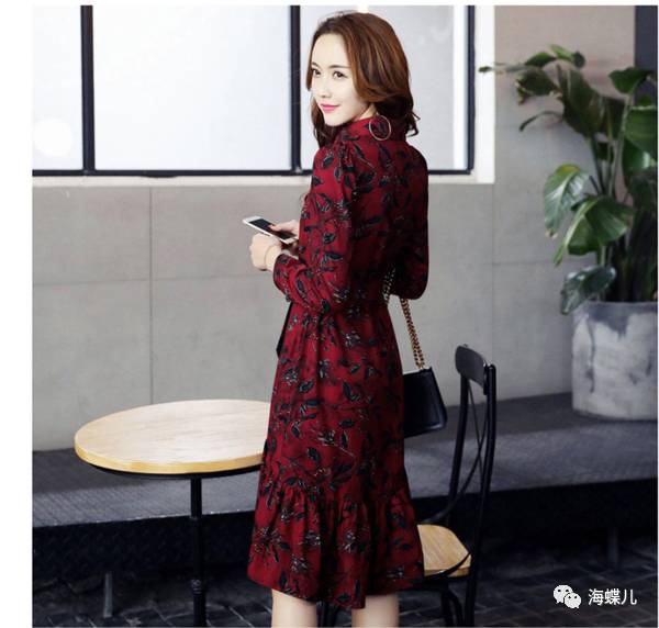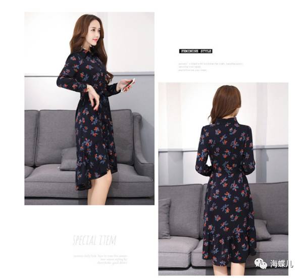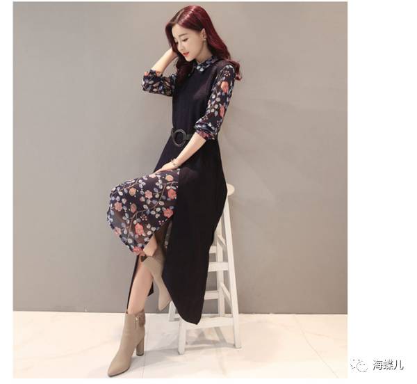 时尚套装搭配示范分享NO4:大摆型气质中腰圆领时尚甜美花色连衣裙