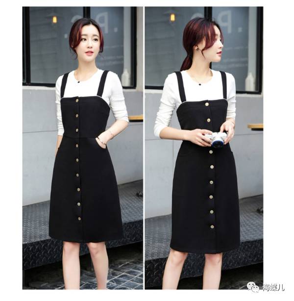时尚套装搭配示范分享NO9:单排扣针织连衣裙长款背带裙子