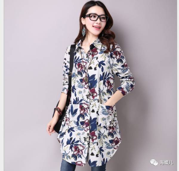 时尚套装搭配示范分享NO13:长袖中长款套头印花棉麻