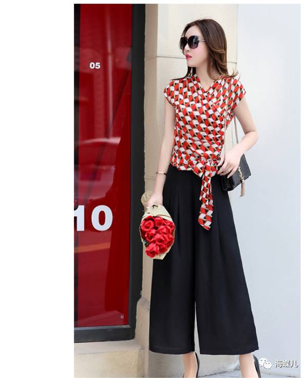 时尚套装搭配示范分享NO1:修身上衣宽松阔腿裤时尚两件套