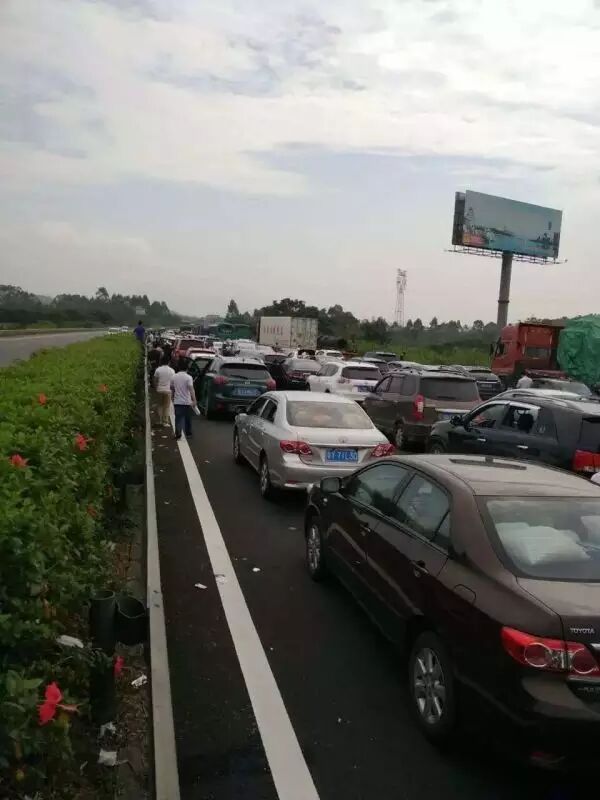 据央视报道,一个旅游团到达广州白云机场准备去往泰国旅游,直到飞机起飞,拿着所有游客护照的旅游团领队还堵在路上。领队称他在广深高速上遭遇了堵车,平常车程是两个多小时:“昨天我从下午两点坐到晚上十点,七个多小时才到机场。”