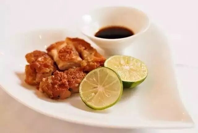 拿起手机打开外卖app,选择一家你喜欢的快餐店的鸡块。然后切开柠檬、把外卖来的鸡块和酱料,像下面的图片一样摆放——