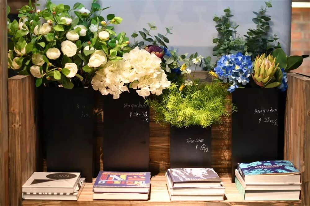 ▲书架后方的各种盆栽花艺也是可以出售的,均价28-398元。其实,装点美好生活的门槛并不高。