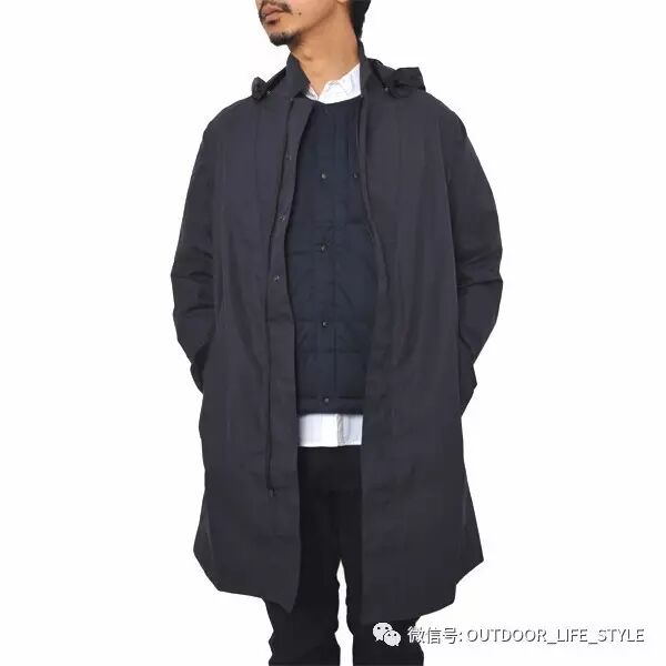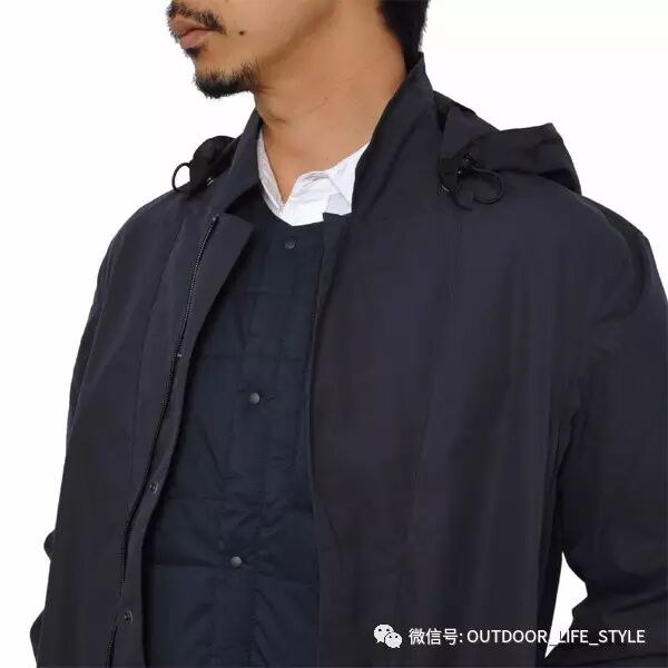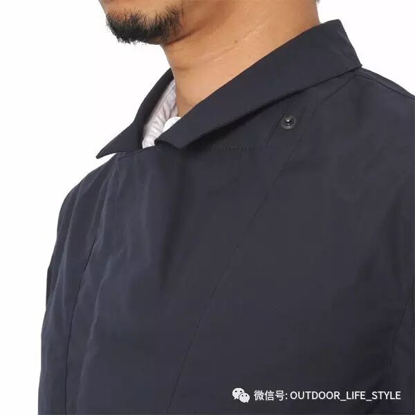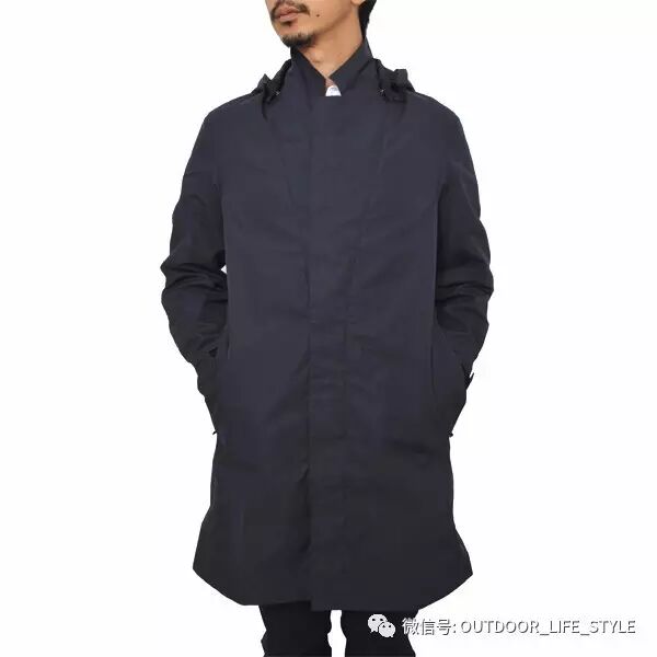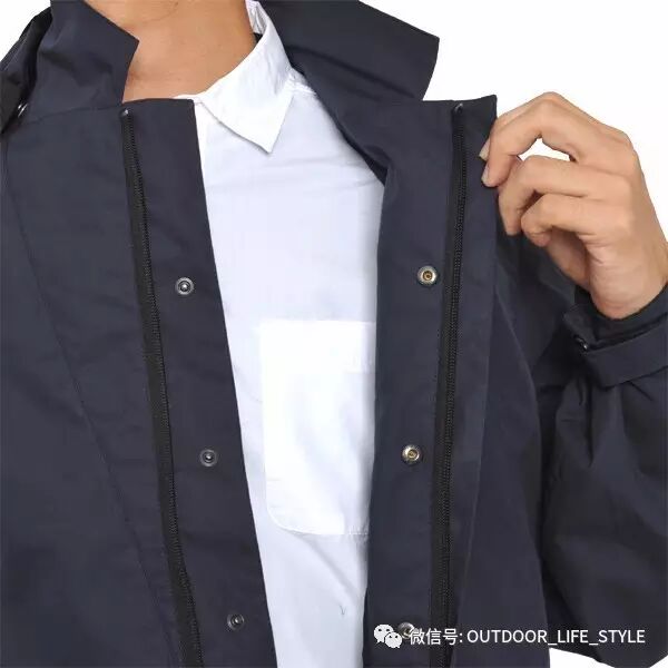 先来看这件可脱卸帽的中长款风衣服,整体形态有点M51的身影,但是修身的剪裁又可以说完全脱离的M51的阴影,拉链用的是暗门襟的设计,多了一份城市精英的干练,衣服采用的是一种高密度的棉,这种棉官方称之为Ventile cotton,有很强的透气性,亦有一定的防风和防泼水功能。