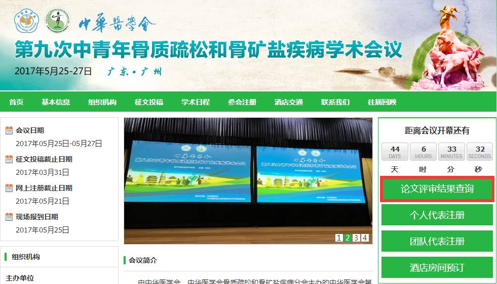 中华医学会第九次中青年骨质疏松和骨矿盐疾病学术会议评审工作已经结束。本次大会共收到论文 358 篇,经过专家们评审,现将论文评审结果予以公布,具体查询方法见以下步骤: