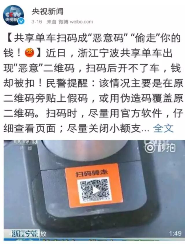 随着共享单车在各大城市的兴起,一些不法分子也看到了“商机”,譬如令人恼火的恶意二维码。