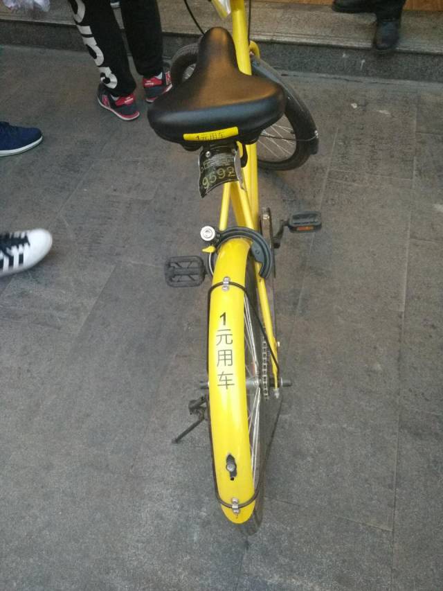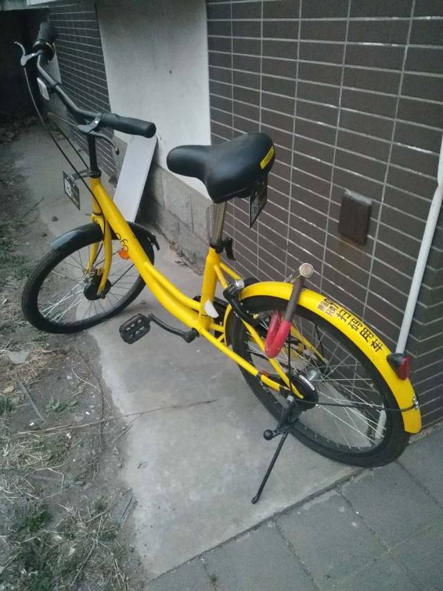 在我们住的宿舍楼的对面有一辆小黄被一把锁上。共享单车是为所有人服务的而不是单纯地属于某个人。