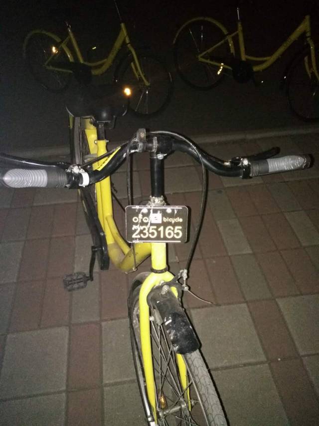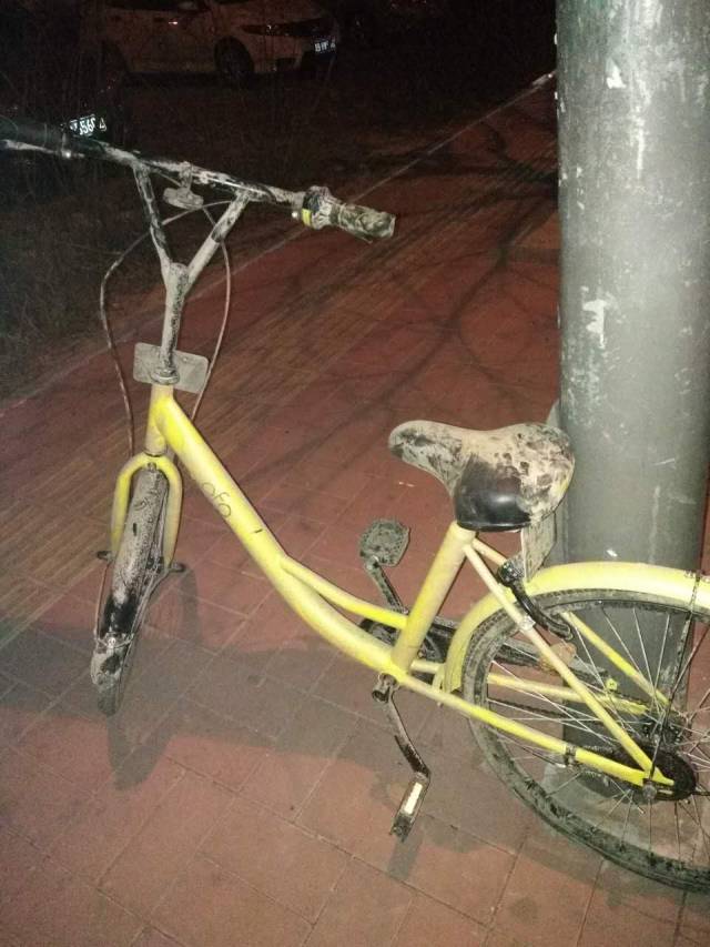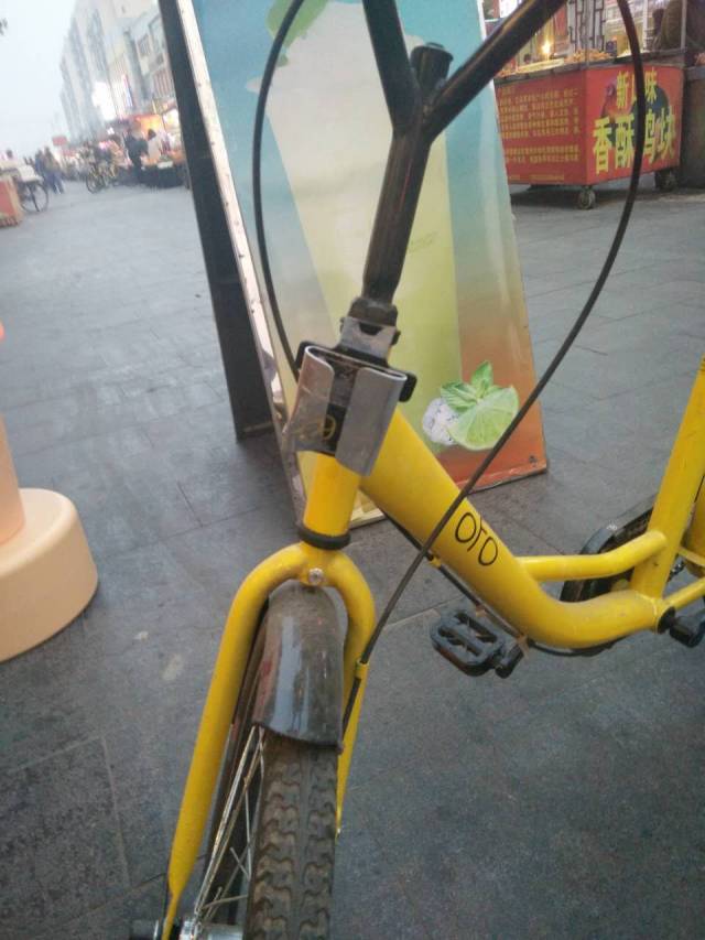 为了避免其他行人骑走,这辆小黄前后车牌都被恶意掰弯。