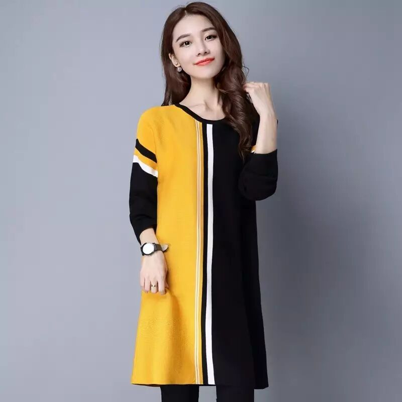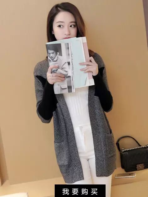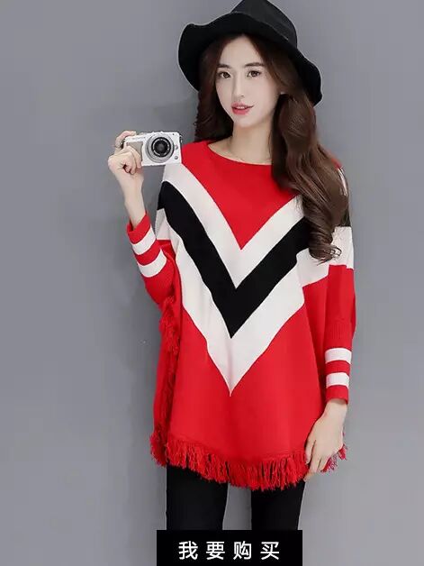 TOP4:中长款个性时髦撞色拼接长袖针织衫,套头圆领不仅显出甜美还凸显迷人的锁骨,S型的裁剪线条,显瘦不挑身材。