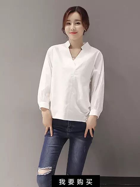 TOP12:韩版优雅的纯色白衬衫,这天正好可以单穿,活脱脱的一股淑女风范,领口设计开口造型不知道有多性感娇嫩,而且衬托的皮肤也是相当好。